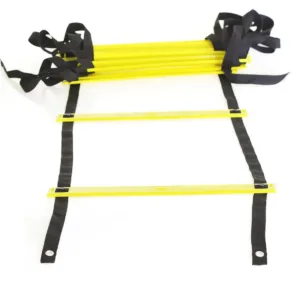 Uma escada de agilidade em PVC é um equipamento de treinamento funcional utilizado para melhorar a coordenação, agilidade, equilíbrio e velocidade através de exercícios de saltos e movimentação. É composta por degraus (geralmente de PVC) presos a fitas de nylon, permitindo ajuste na distância entre os degraus, o que a torna adaptável a diferentes tipos de treino e níveis de desempenho.
