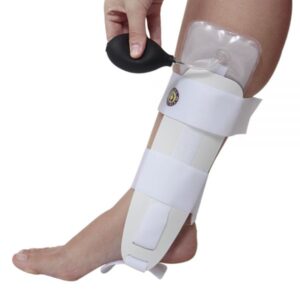 A Tornozeleira AirPauher é um dispositivo pneumático de imobilização e suporte para prevenção e tratamento de torções e lesões nos ligamentos restringindo os movimentos de inversão e eversão do tornozelo, aconselhado também para pós-operatório e controle de instabilidade. Com exclusivo e moderno sistema pneumático de enchimento, utiliza uma bomba de ar para inflar as almofadas flexíveis. AirPauher possui duas hastes, em forma de concha que são ideais para ajuste da largura de cada pé conformando e estabilizando os tornozelos mesmo que estejam inchados.