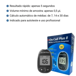 Mantenha o controle de sua diabetes com a confiança e a precisão que você merece! O Monitor de Glicemia On Call Plus II é a escolha inteligente para quem busca resultados rápidos e fidedignos, transformando o monitoramento diário em uma rotina simples e eficaz. Com a qualidade reconhecida da Medlevensohn e aprovação pela ANVISA, o Monitor de Glicose On Call Plus II oferece o que você precisa para uma gestão proativa do seu bem-estar, em casa ou em qualquer lugar.