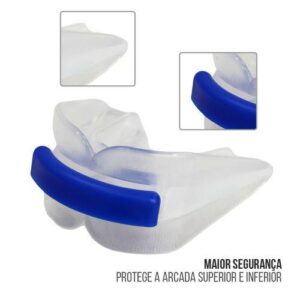 Possui dupla função abrangente protegendo a arcada inferior e superior dos dentes, assim como lábios, bochechas e língua. Reduz as vibrações e impede que os dentes choquem-se reduzindo o risco de concussão absorvendo o impacto e limitando o movimento maxilo -mandibular. Cuidados e Conservação: A limpeza deve ser feita com pasta de dente e escova imediatamente após o uso. Deve ser guardado seco em sua respectiva caixinha de transporte. Não deixar o protetor em contato com o sol para não ressecar. Evite forçar os dentes contra o protetor, pois isso poderá diminuir sua durabilidade. Não é recomendável o uso por mais de uma pessoa.