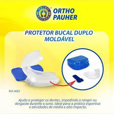Protetor Bucal Duplo Moldável ajuda a proteger os dentes, impedindo o ranger ou desgaste durante o sono. Ideal para a prática esportiva e atividades de médio e alto impacto.
