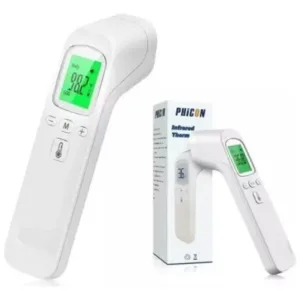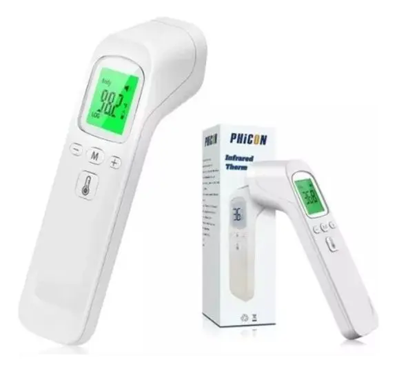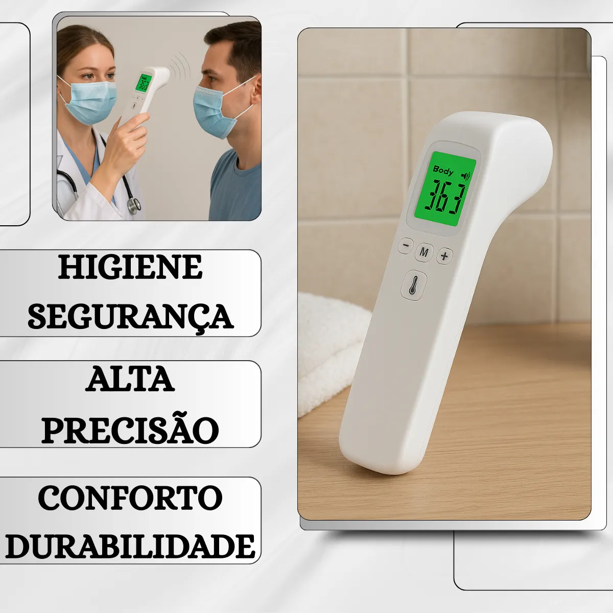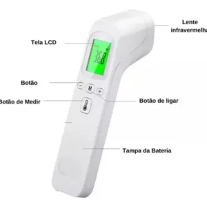 É digital e infravermelho, bastando apontar na testa, a uma distância entre 1 cm e, em 1 segundo a mensuração da temperatura aparecerá no visor.